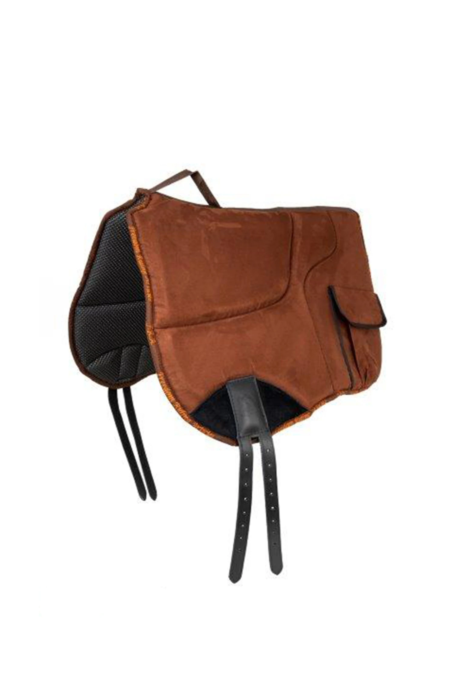 Das sehr gute anatomische Design und der großzügige Widerristausschnitt geben diesem Reitpad einen ganz eigenen Charakter. Die Oberseite ist aus Microfaser, die Unterseite aus Sympanova, die Gurtstrupfen aus Leder. Die Schaumstofffüllung aus high density foam ist beim Widerrist extra dick. Sympanova ist ein flexibles Anti-Rutsch-Gitter aus Neopren. Dieses Material ist pflegeleicht, stoßdämpfend, hautfreundlich und temperaturregulierend.