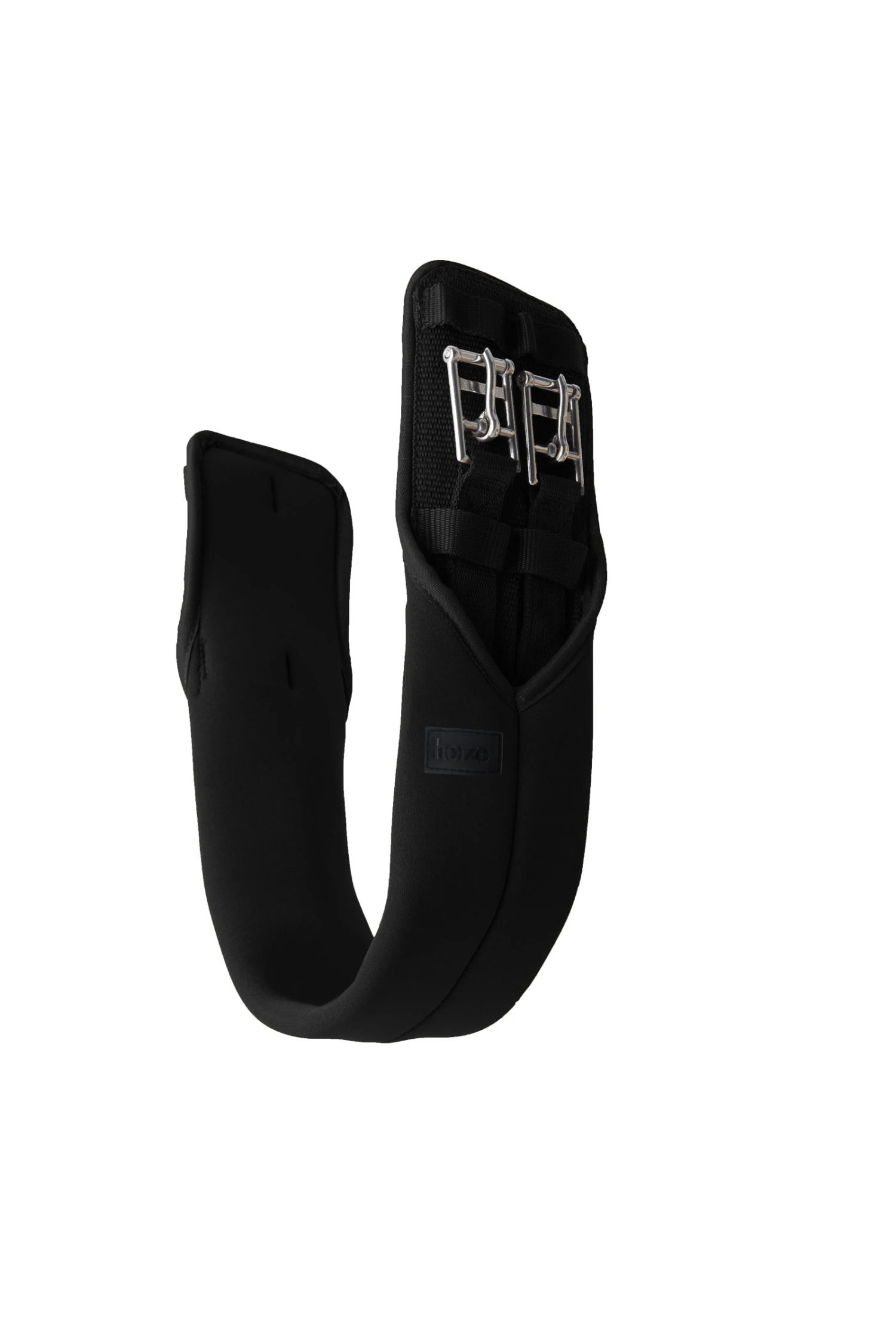 Weicher Neopren-Dressurgurt ohne Gummizug. Für mehr Komfort reicht das Neopren weit über die Rollschnallen hinaus, um Scheuer- und Druckstellen zu vermeiden. Gurtschlaufen halten die Gurtstrupfen an ihrem Platz. Logoplakette aus Gummi.