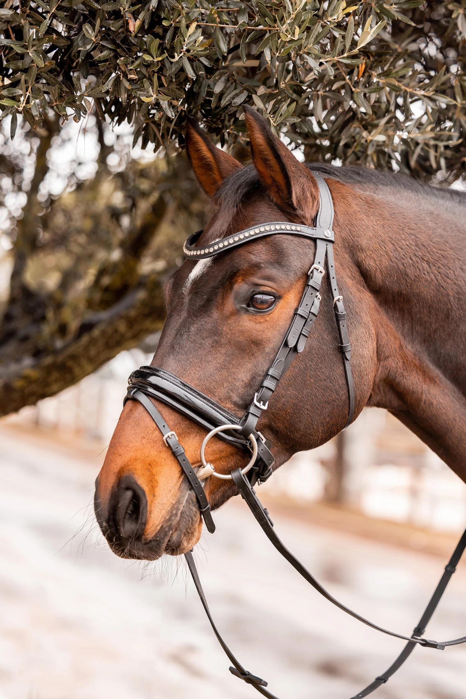 Unser Horze Wicklow Stirnriemen ist in einer hübschen Form gestaltet und mit einer Reihe von Kristallen verziert, die in das Leder eingelassen sind. Das weiche Leder passt sich bequem an den Kopf deines Pferdes an. Zwei Schlaufen machen das Wechseln zum Kinderspiel.